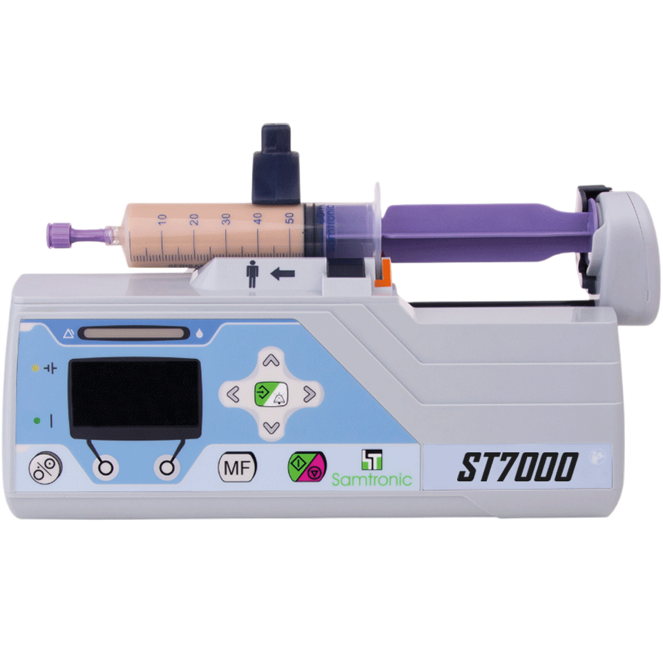 La ST7000 2ed es una bomba de infusión a jeringa precisa y segura, diseñada para la administración controlada de fármacos en pacientes neonatales, pediátricos y adultos.