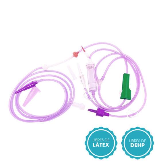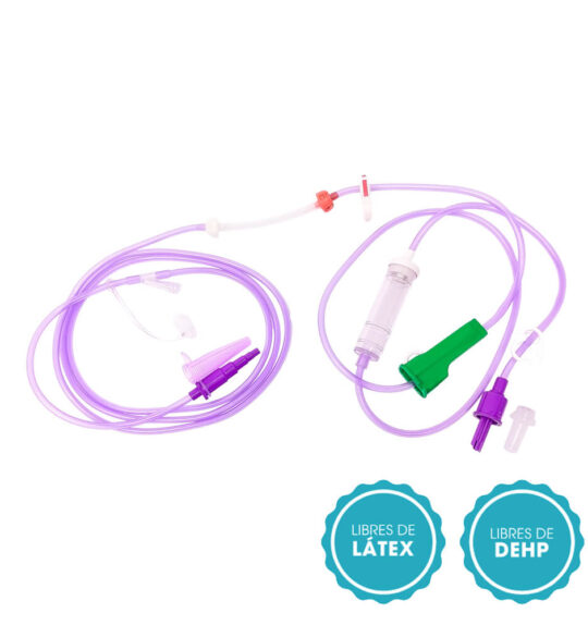 El equipo y sus descartables en color lila cumplen con normas internacionales, asegurando infusiones enterales correctamente identificadas y evitando riesgos de conexión cruzada.